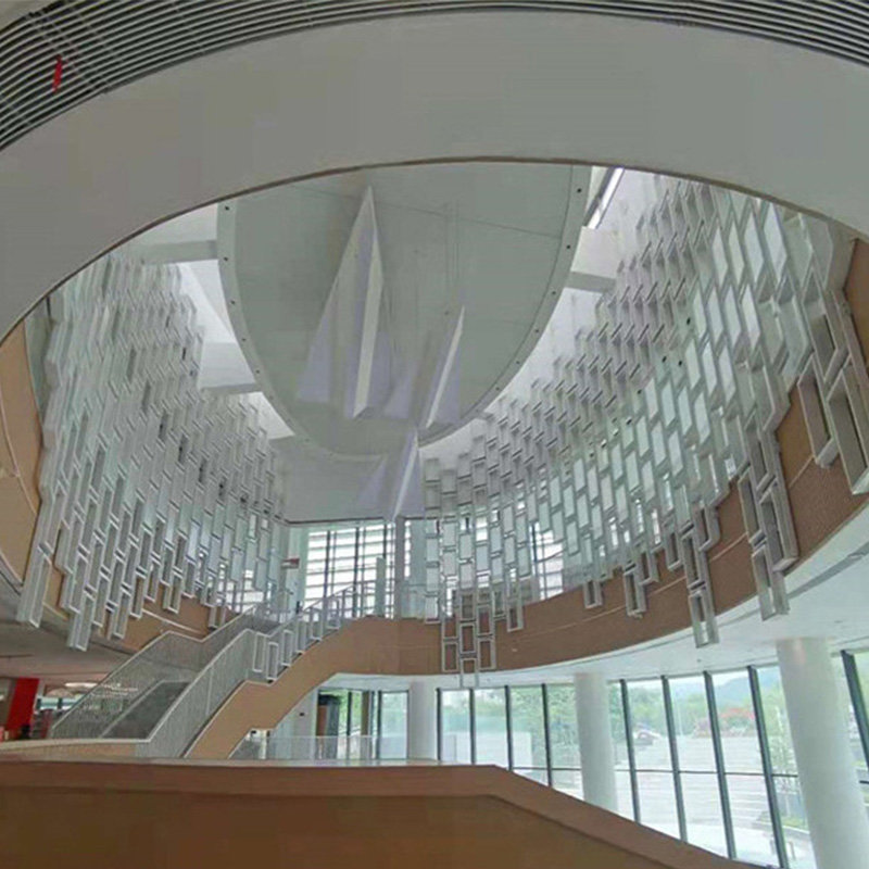 GRG以优质石膏粉、短切玻璃纤维及特殊添加剂为基材,通过模具浇筑成型,可精准复刻单曲面、双曲面、三维覆面等几何形状,甚至实现镂空花纹、浮雕图案等艺术细节。例如,广州大剧院采用GRG打造折线棱角造型,与建筑整体雕塑感完美融合;深圳当代艺术馆则通过GRG塑造“呼吸式”界面系统,墙面与吊顶的穿孔率梯度变化形成星空透光效果。