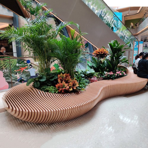这个适用于商业广场以及各类公共场所的座椅,配上流行的颜色以及绿色植物,美观大方,大型的景观座椅,可以完美的与植物结合在一起。